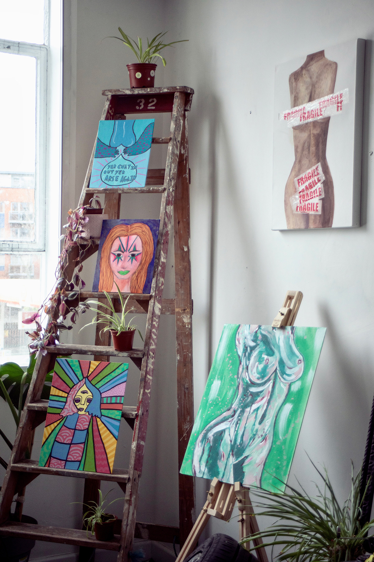 To celebrate International Women's Day 2023, Hedges was tasked with curating an immersive exhibition to celebrate the artwork of Vintage Cash Cow's female and non-binary employees, using only found objects and a company meeting room.